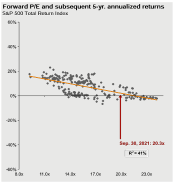 (Note – as of October 19, we’re now at 22.3x forward P/E indicating an expected return of 0% over the next 5 years.)