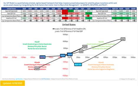 Macro Cycle: As clients and readers know we track the macroeconomic cycle in two ways. The traditional business cycle pattern of recovery, expansion, moderation and contraction/recession govern our longer-term market views. This business cycle unfurls slowly over a period of 7-10 years but is extremely impactful at inflections. To navigate the nuances more tactically, we rely on the Quad framework, which measure the rates of change in growth and inflation. The Quads help us from a risk budgeting standpoint, ie how much relative risk we want to have on or take off, and from a sector and factor based standpoint guiding overweighting and underweighting decisions.